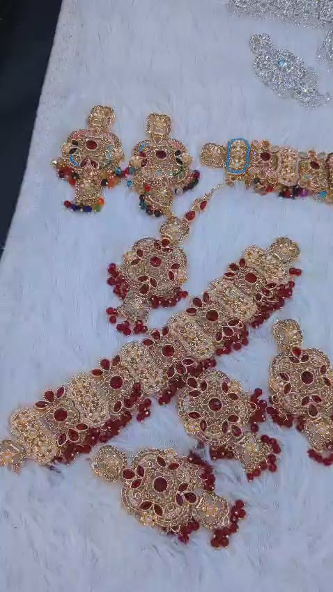 Party Wear Set 🎉 Zarqon or Poalki Work 💎 Choker Style Necklace 📿 With Tikka